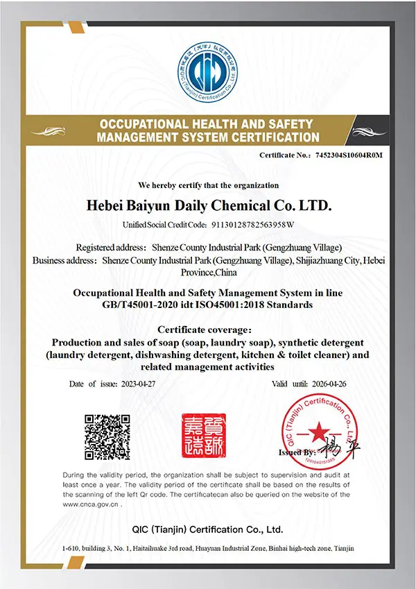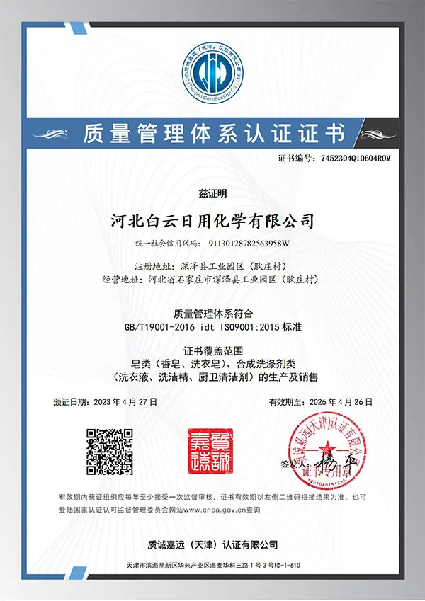 The company now has more than 200 employees, including 3 senior engineers, 30 technical sta and 13 production lines, in 2012, we buit four new workshops which including automatic workshop for iquid detergent, dust-free workshop for toilet cleaning products, soap workshop for exporing items and workshop for kitchen cleaning products. Besides domestic market, our products are supplied to over 50 countries/regions.